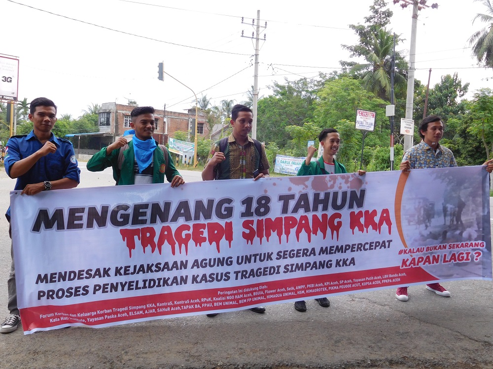 "If not now, when?" Students demand justice at the remembrance of the 18th anniversary of the Simpang KKA incident. (Lia Kent)