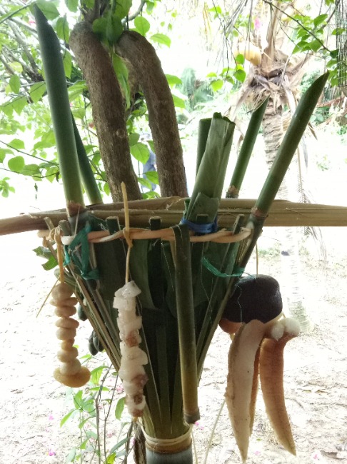 “Feeding the new rice" (mpara pade uman). Newly harvested rice from their fields will be stored in sacks. They “feed” it by placing offerings such as steamed rice (freshly cooked from the top layer), water, liquor (arak), and umpak (consisting of betel leaves, slaked lime, and gamber).
